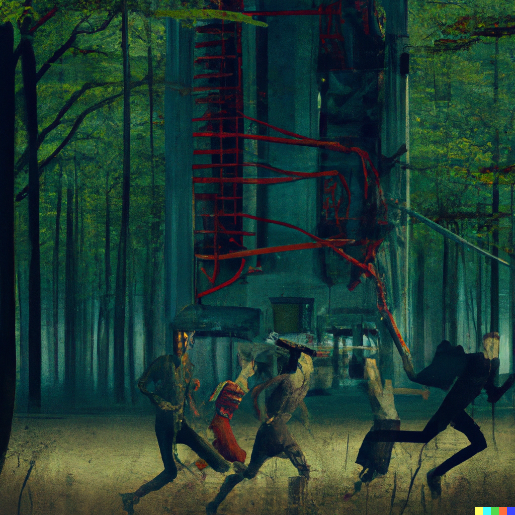 אור ירוק-ים פיעפע במחילה בה התמקמנו. א”מ סיפק עץ רקוב ואנחנו הבערנו אותו, יושבים מכורבלים מסביב לאש החיוורת והנוגעת ללב, מספרים סיפורים כדי למנוע מבני לבכות בלילו התמידי.