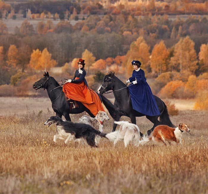 "קונסטנס ואני ישבנו בבטחה על האוכף," המשיכה הברונית בשלווה, "ולא התקשינו לשמור על מקומנו בקבוצה המובילה, אף על פי שהמרדף היה קשה למדי. ואולם לקראת הסיום התברר כי שמרנו בעליל על מסלול יותר מדי עצמאי, משום שאיבדנו את הכלבים ומצאנו את עצמנו משתרכות ללא מטרה קילומטרים רבים באמצע שום מקום. העניין עורר בי רוגז, וסבלנותי הלכה ופקעה בהדרגה, ולפתע, בעודנו מפלסות את דרכנו דרך שורת שיחים אדיבה, התרונן לבנו למראה כלבי ציד נובחים במלוא גרונם בעמק למטה.