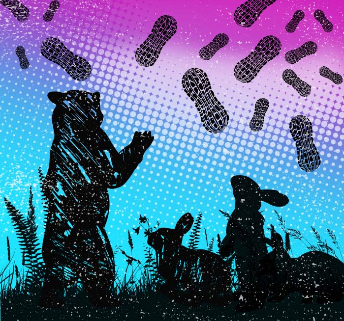 Ti-yi! dem goober pea.“‘Howdy, Brer B’ar!’“Sho’ ’nuff w’en de goobers ’gun ter ripen up, eve’y time Brer Fox go down ter his patch, he fine whar somebody bin grabblin’ ’mongst de vines, en he git mighty mad. He sorter speck who de somebody is, but ole Brer Rabbit he cover his tracks so cute dat Brer Fox dunner how ter ketch ’im. Bimeby, one day Brer Fox take a walk all roun’ de groun’-pea patch, en ’twan’t long ’fo’ he fine a crack in de fence whar de rail done bin rub right smoove, en right dar he sot ’im a trap. He tuck’n ben’ down a hick’ry saplin’, growin’ in de fence-cornder, en tie one een’ un a plowline on de top, en in de udder een’ he fix a loop-knot, en dat he fasten wid a trigger right in de crack. Nex’ mawnin’ w’en ole Brer Rabbit come slip-pin’ ’long en crope thoo de crack, de loop-knot kotch ’im behime de folegs, en de saplin’ flew’d up, en dar he wuz ’twix’ de heavens en de yeth. Dar he swulig, en he fear’d he gwineter fall, en he fear’d he wer’n’t gwineter fall. W’ile he wuz a fixin’ up a tale fer Brer Fox, he hear a lumberin’ down de road, en present’y yer cum ole Brer B’ar amiblin’ ’long film whar he bin takin’ a bee-tree. Brer Rabbit, he hail ’im: