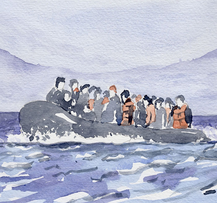 ‘They call it the blue desert you know,’ Dani said sitting down heavily, waking Senebesh up. ‘Another desert?’ she shouted over the boat’s engine. ‘It is just as hot, nothing grows and it’s endless.’ ‘How long left?’ ‘Sixty-two hours,’ Dani replied. ‘We’ve only been sailing for ten?’ Dani shrugged as Senebesh turned to find the Libyan shore, now a barely visible strip in the distance. Of the 430 people crammed onto the inflatable boat, a stern-looking Senegalese man, the unofficial captain, barked at her, ‘Look for oil rig, we’re not going back to Libya, don’t look back.’ Senebesh glanced at the satellite phone and GPS tracker in his hand. After basic lessons in steering, the smugglers gave these to him, told him to sail for an oil rig near Lampedusa, that the workers would alert the Italian coastguards, that the plan isn’t to reach the island, but to be rescued, and the boats were designed so. ‘What you looking at?’ the captain barked again. ‘Nothing,’ Senebesh said, as Dani moved to stand between them, fixing the man with a hard stare. ‘Leave her alone! You’ve bigger things to worry about!’ ‘What things?’ Senebesh whispered, and her face fell as Dani explained. ‘We are too many for this boat. It’s held together with glue, the smugglers use anything. The glue is melting. The man over there spread his water-soaked jacket over the melting part, has to splash water on it, keep it wet in all this heat.’ ‘Will it hold for long?’ she asked. ‘Two days, no more…’ That’s not enough time!’ ‘That’s why he is nervous,’ Dani said. ‘The coastguards are our only hope.’